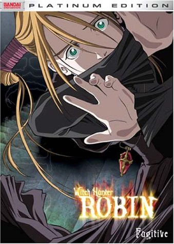 DVD extras to include textless opening and ending, STNJ Personnel Files, Liner Notes, Reversible Cover featuring Karasuma Miho and Doujima Yurika from JP DVD III, Interactive Menus, and trailers. The "Platinum Edition" ships with the Witch Hunter Robin Original CD Soundtrack (My guess is the first one), collector's box, a WHR T-shirt (one size fits all), a WHR shot glass, and two animation cels from the series.